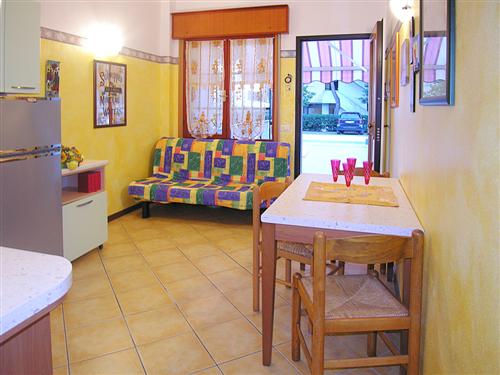 | Comments | Bibione Spiaggia, Corso Europa/Via Ercole. Apartmentshouse 80m from the beach and 150m from the center. Apartment on the ground floor with terrace and numbered car parking facility. New furnished. · Type B 2+2 : Apartment on the ground floor · Living room with double sofa bed and kitchen corner · 1 double room · Bathroom with shower cubicle · Large terrace · Numbered car parking facility · With: air conditioning, micro wave, it-tv, washing machine, armour-plated door, refrigerator with freezer. |